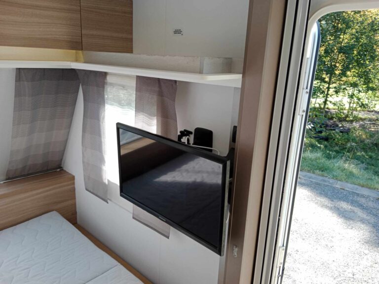V přední části se nachází manželská postel s TV