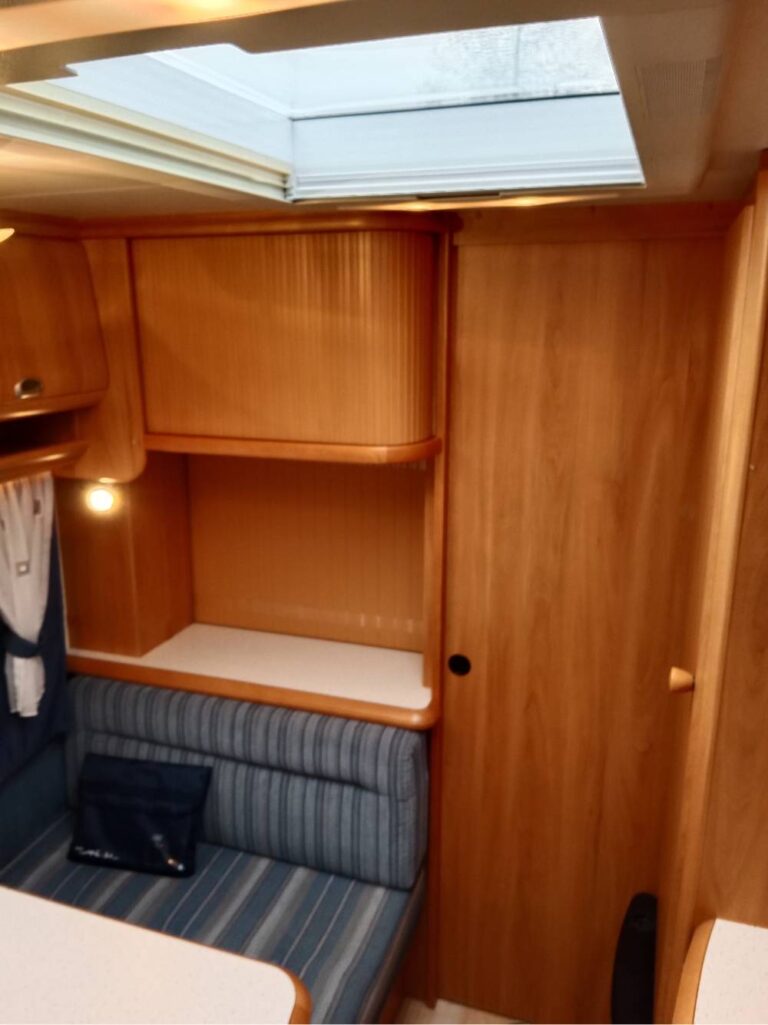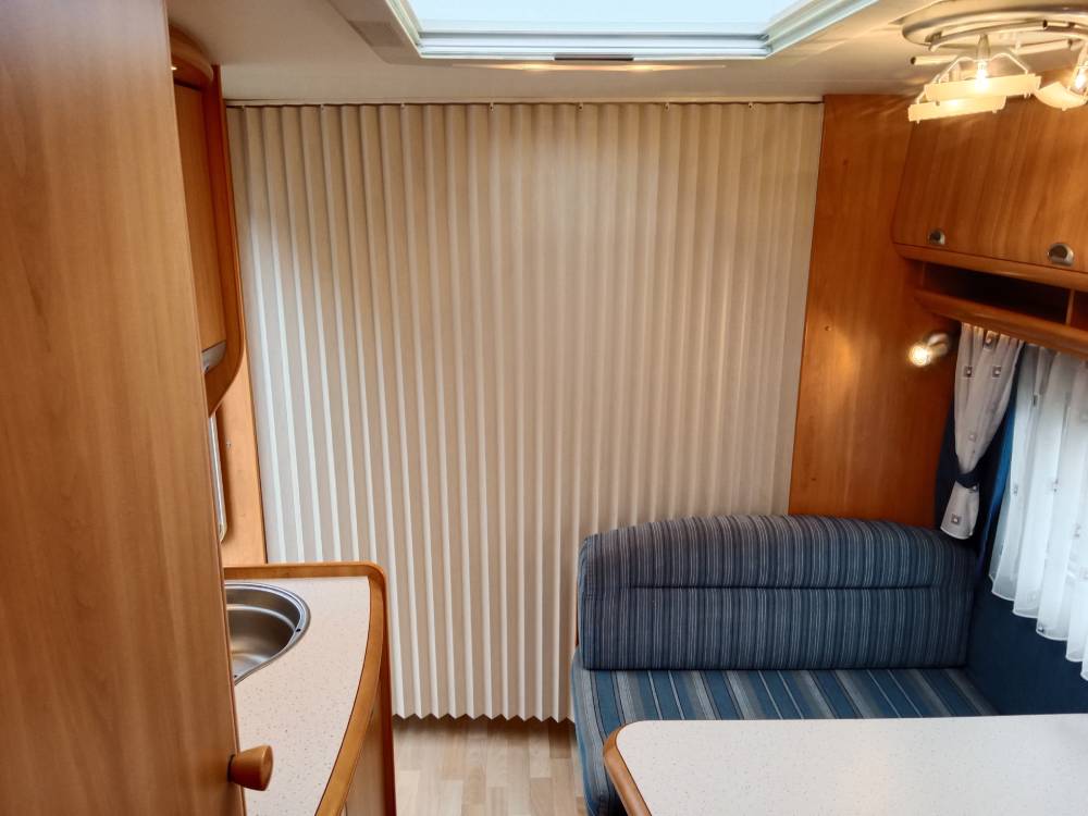 Na zádi se nachází palandy uprostřed sezení které se dá rozložit na spaní. Na proti kuchyň z lednicí a mrazákem. Na přídi manželská postel s úložným prostorem , na proti WC a sprcha.