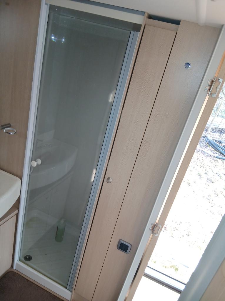 Koupelna: Rohová s oddělenou sprchou a otočnou kazetovou toaletou. Bojler na Plyn a elektriku, lednicí 230V/Plyn/ 12V s troubou a grilem, sporák se 4 hořáky, kazetovou toaletou a panoramatickým střešním oknem Heki. Standardem je také stabilizátor AL-KO AKS, 13-pinová elektroinstalace a moderní LED osvětlení. Pohon Mover s dálkovým ovládáním, baterie.